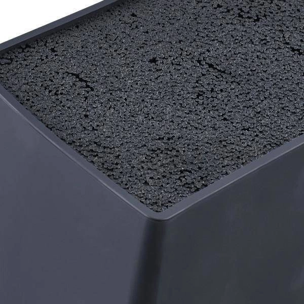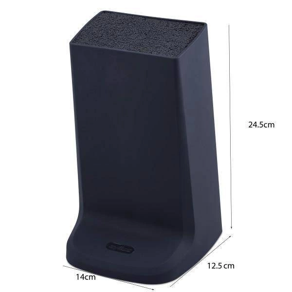 Nachylony pod kątem ułatwia wkładanie oraz wyciąganie potrzebnego noża. Stojak ma antypoślizgową podstawę, zapewniającą mu stabilność.