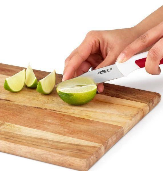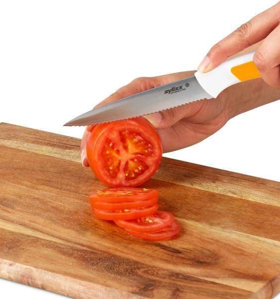 Zestaw zawiera noże w optymalnym rozmiarze i o kształcie ostrzy najbardziej pożądanym i używanym podczas codziennych czynności w kuchni. Każdy z noży posiada ochronną osłonę na ostrze, umożliwiającą bezpieczne przechowywanie w kuchennej szufladzie oraz skorzystanie z noża poza kuchnią, np. na biwaku lub w pracy.