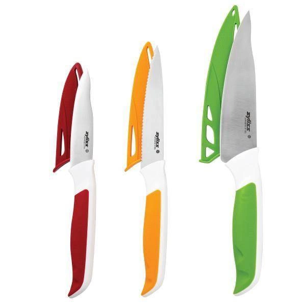 • zestaw zawiera 3 noże wraz z ochronnymi osłonami na ostrza