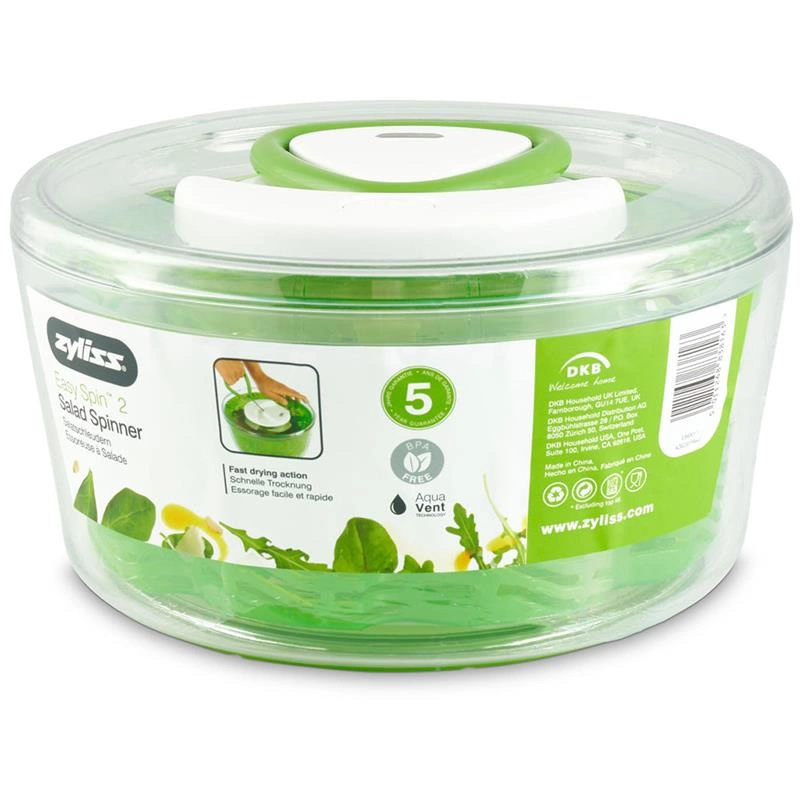 Koniec ery wirówek na korbkę, od których używania bolą ręce. Suszarka EasySpin2 marki Zyliss jest niezwykle pomocna przy codziennym przygotowywaniu sałatek, to z nią bez użycia wysiłku w kilka chwil osuszysz liście sałaty, szpinaku i in.