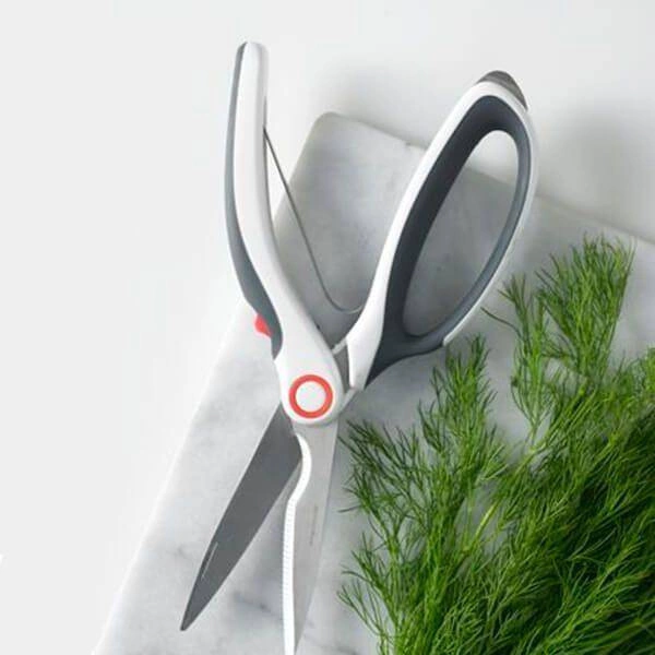Uniwersalne nożyce Zyliss wyposażone są w wygodny uchwyt, który zapewnia pewny chwyt podczas cięcia różnych materiałów.