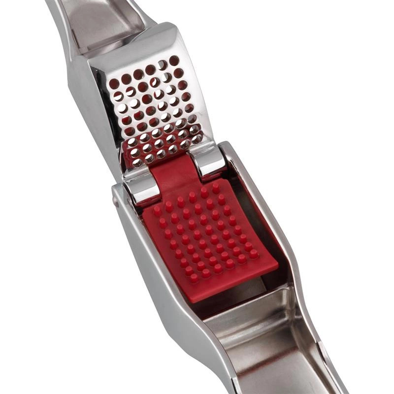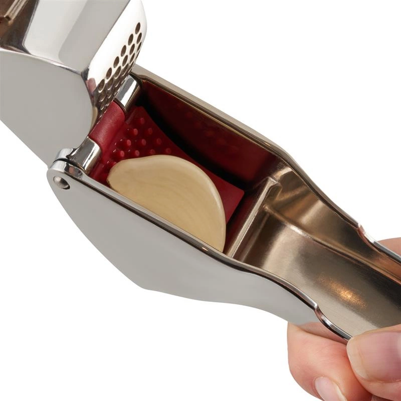 Wyciskacz ma specjalną konstrukcję komory, która oddziela czosnek od skórki podczas miażdżenia. Umieszczona wewnątrz niej dźwignia umożliwia wyjęcie wyciśniętego czosnku bez konieczności dotykania go dłonią, chroniąc przed nieprzyjemnym zapachem.