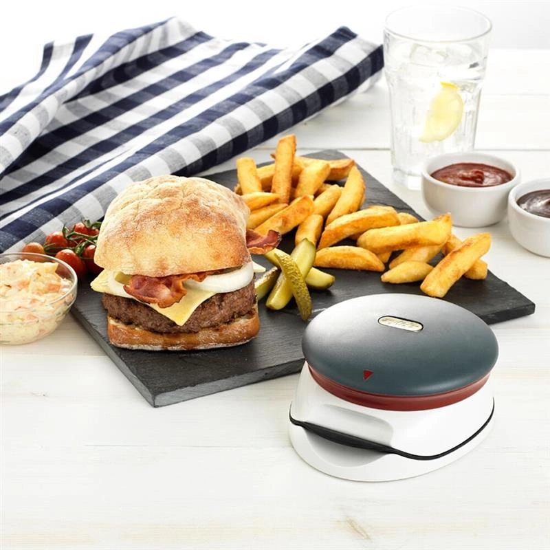 - regulacja wagi oraz grubości burgera za pomocą pokrywy - 1/2 lb (2,5 cm, 225 g) lub 1/4 lb (1,25 cm, 115 g)