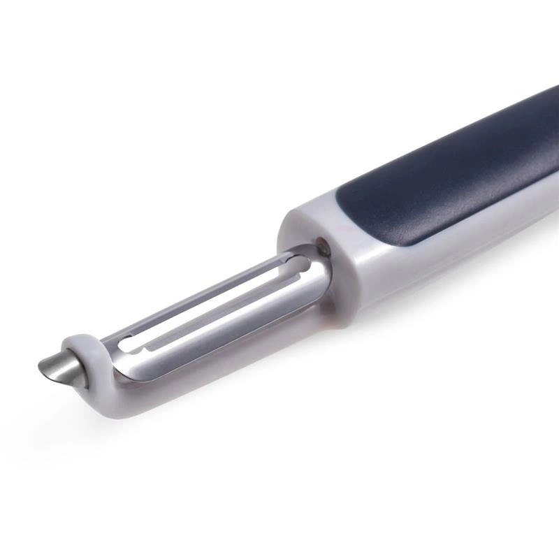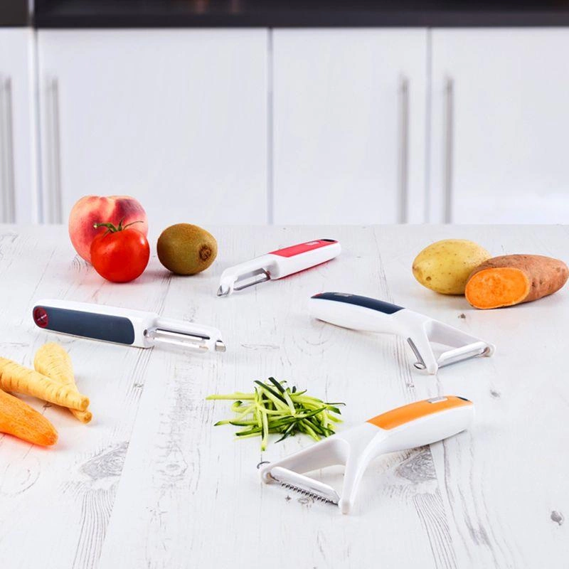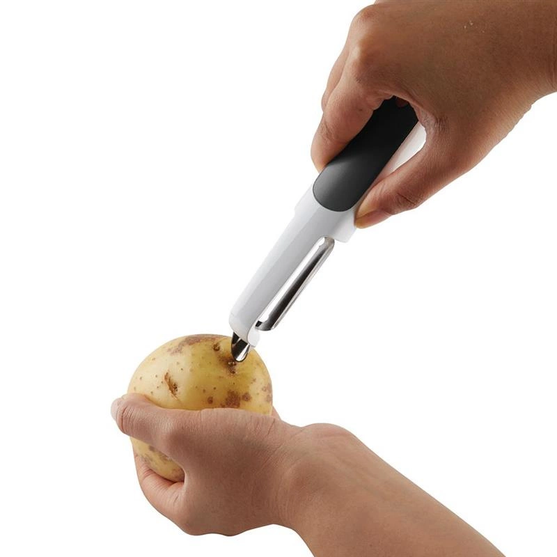 Dzięki dwustronnemu ostrzu mogą ją z łatwością używać osoby lewo- i praworęczne, a wygodny uchwyt sprawia, że doskonale leży w dłoni. Posiada ostre narzędzie ze stali do usuwania oczek, przebarwień z warzyw.