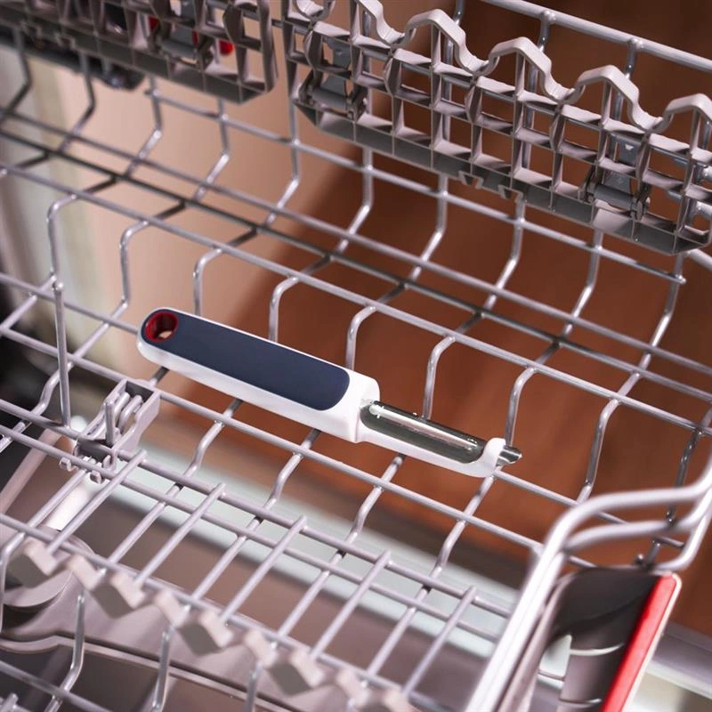 Obieraczka posiada dwustronne ruchome ostrze z hartowanej stali nierdzewnej, dzięki czemu pozostaje ostra przez długi czas.