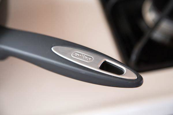 Naczynie zostało wyposażone w nitowany uchwyt, który podczas użytkowania nie będzie się poluzowywała. Uchwyt pokryty jest miłym w dotyku, antypoślizgowym tworzywem. Rączka nie przewodzi ciepła chroniąc przed oparzeniem.