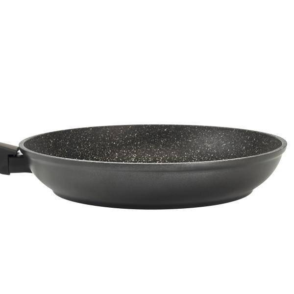 3-krotnie nakładana powłoka non-stick szwajcarskiej marki ILAG zwiększa trwałość patelni. Na patelni można smażyć bez używania tłuszczu. Powłoka jest na tyle trwała, że dozwolone jest używanie metalowych narzędzi - łyżka, łopatka lub widelec. Powłoka patelni ma porowatą powierzchnię.
