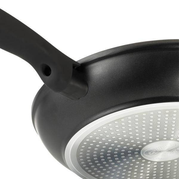 Patelnia posiada gruby, kuty aluminiowy korpus, dzięki któremu możliwe jest bardzo szybkie i jednocześnie równomierne nagrzewanie.Grubość dna patelni to 6 mm. Odpowiednia grubość dna zapewnia, że patelnię można stosować na wszystkich rodzajach kuchenek, w tym także indukcyjnych.
