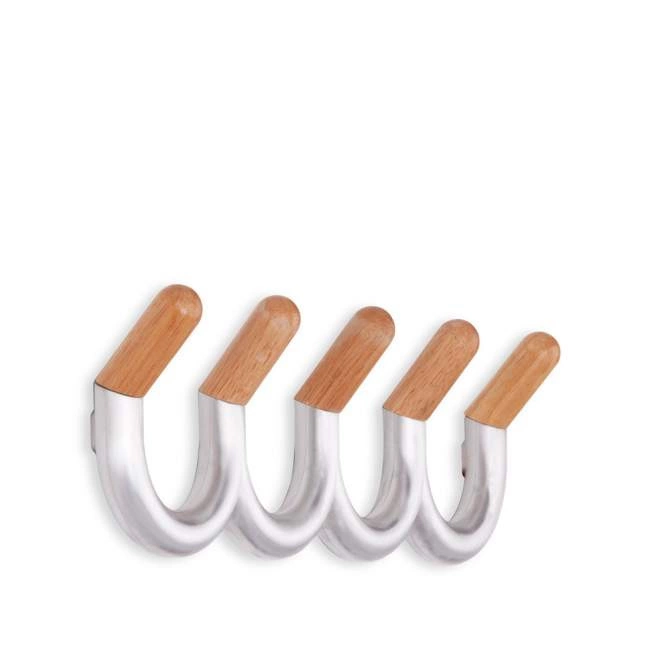 Wieszak Umbra U Turn posiada 5 haczyków, niezwykle ciekawe zestawienie metalu i drewna.
