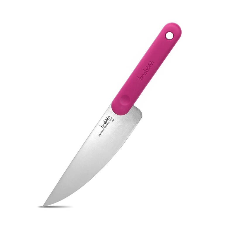 Nóż szefa kuchni z japońskiej stali nierdzewnej, do krojenia w kostkę i siekania. Długość ostrza: 18 cm. Japońska stal nierdzewna 420J2. Antypoślizgowa rękojeść zapewnia wygodny i bezpieczny chwyt. Myć ręcznie. Nie należy przez dłuższy czas namaczać noża w wodzie, ani używać gdy trzonek jest tłusty. Produkt, dzięki kolorowemu opakowaniu, nadaje się na prezent.