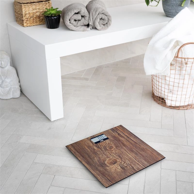 ADE - waga łazienkowa, do 180 kg, 30 x 30 cm, drewniany wzór Holly
