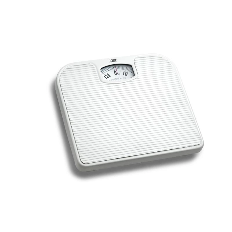 ADE - mechaniczna waga łazienkowa z powierzchnią antypoślizgową, do 120 kg, 27 x 24 cm, biała Nina ADE - mechaniczna waga łazienkowa z powierzchnią antypoślizgową, do 120 kg, 27 x 24 cm, biała Nina Mechaniczna waga łazienkowa