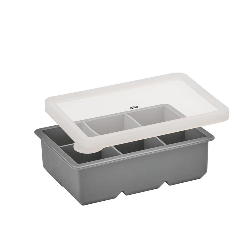 Cilio - silikonowa foremka do lodu z pokrywką, na 6 dużych kostek, 17 x 12 x 5 cm