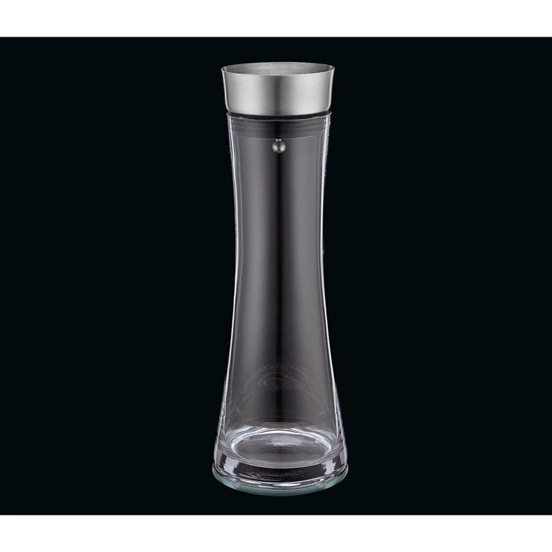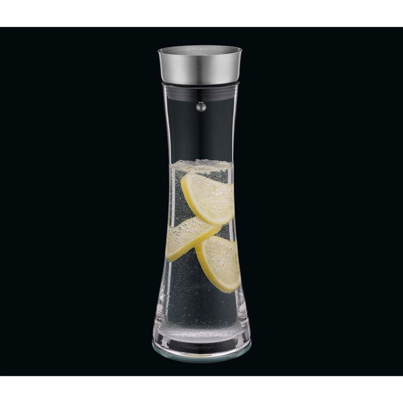 - szklana karafka o eleganckim kształcie została uzupełniona stalową nakrętką ze szczelną, silikonową obręczą
