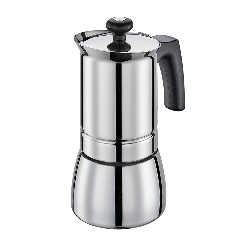 Cilio - kafeteria stalowa, śred. 9 x 18 cm, 4 filiżanki, metaliczna Tosca