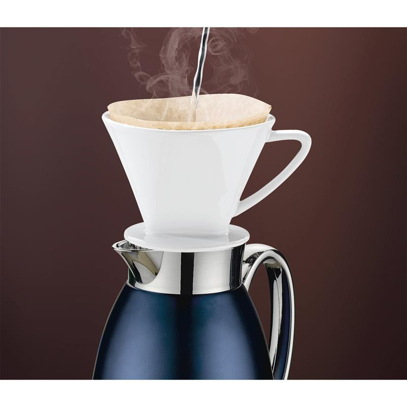 - dzbanek wyposażony jest we wkład z hartowanego szkła izolujący zawartość od zewnętrznej ścianki, dzięki czemu kawa czy herbata dłużej pozostają gorące
