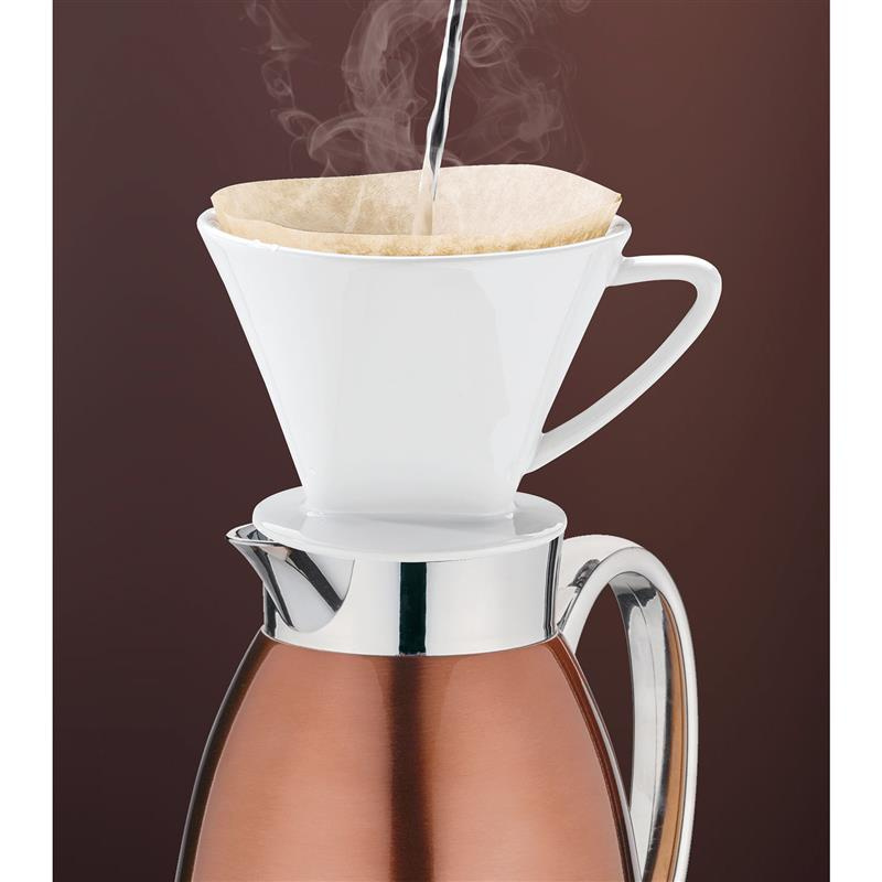 - dzbanek wyposażony jest we wkład z hartowanego szkła izolujący zawartość od zewnętrznej ścianki, dzięki czemu kawa czy herbata dłużej pozostają gorące