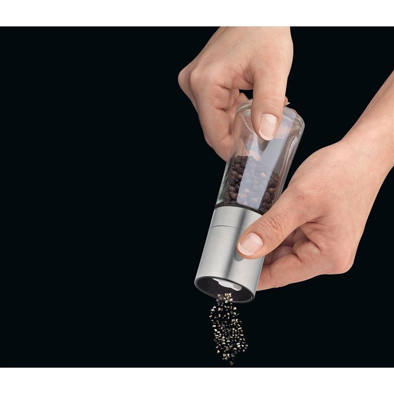 - mechanizm został umieszczony u góry młynka, dzięki czemu resztki zmielonych przypraw nie brudzą blatu