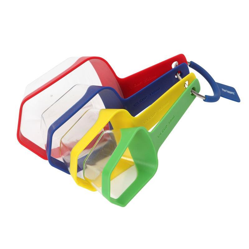 - 4 kolorowe miarki można włożyć jedna w drugą, komplet w całości utrzyma metalowe kółeczko