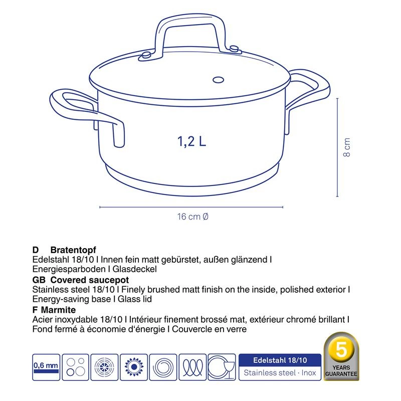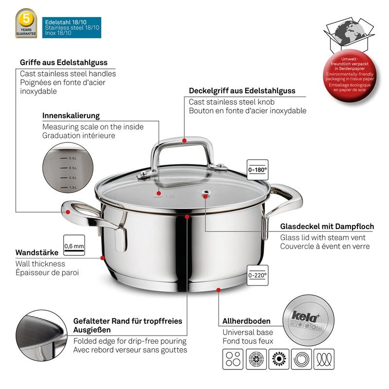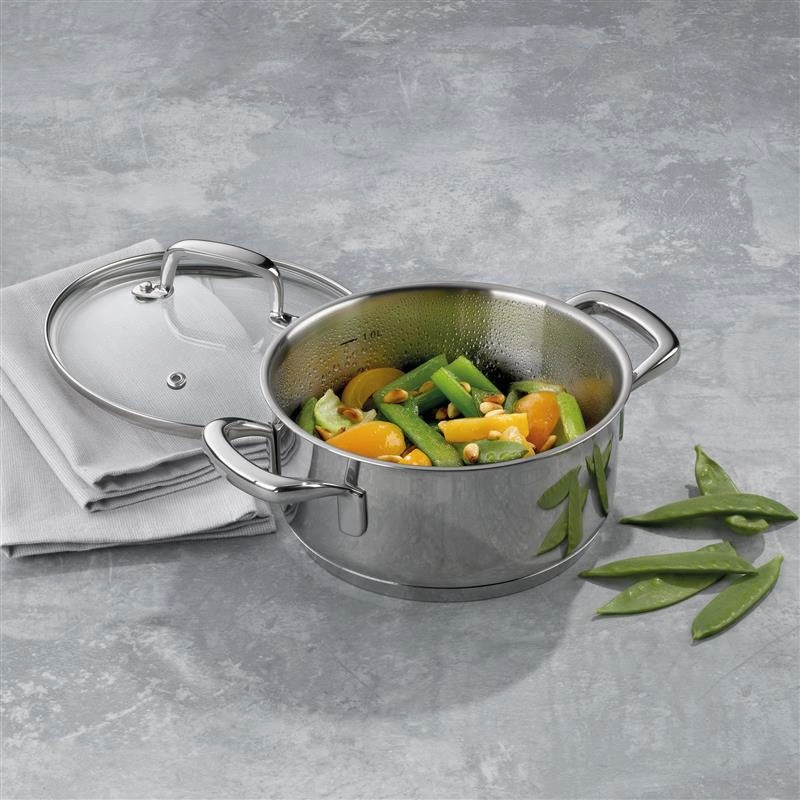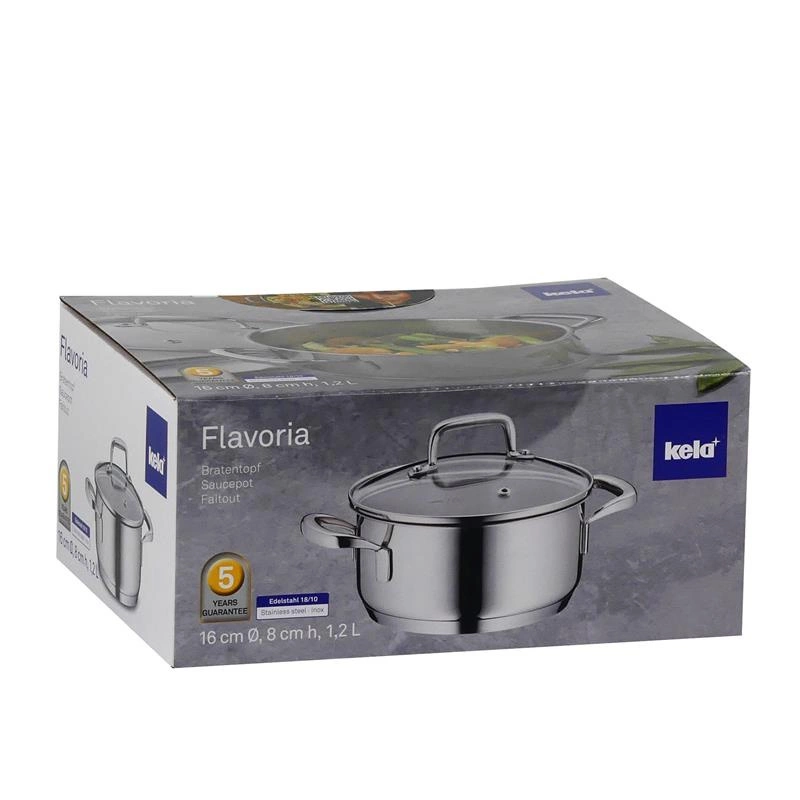 Kela - garnek niski z pokrywką, stal nierdzewna/szkło, 1,2 l, śred. 16 x 8 cm Flavoria