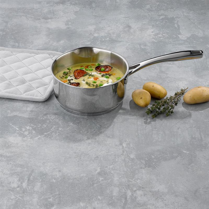 - dno produkowane metodą impact bonding - metal jest podgrzewany do wysokiej temperatury, w której równo rozlewa się po powierzchni, dzięki czemu dno równomiernie rozprowadza ciepło i sprzyja oszczędzaniu energii