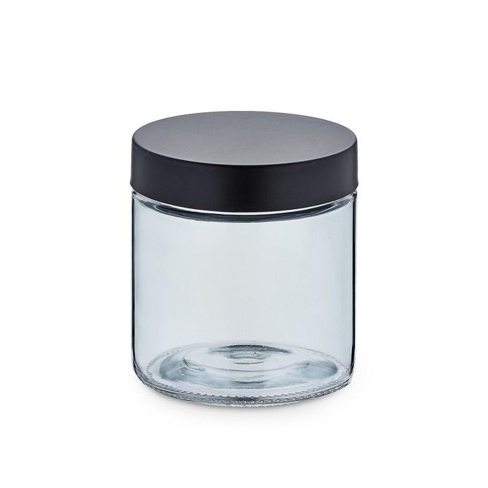 Szklany pojemnik kuchenny ze stalową pokrywką.