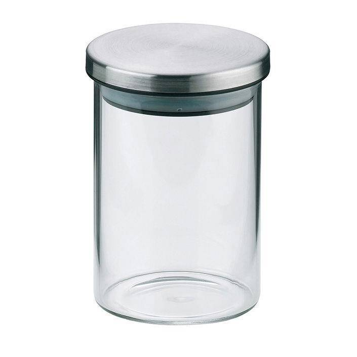 - szklany pojemnik został uzupełniony o szczelnie przylegającą, stalową pokrywkę