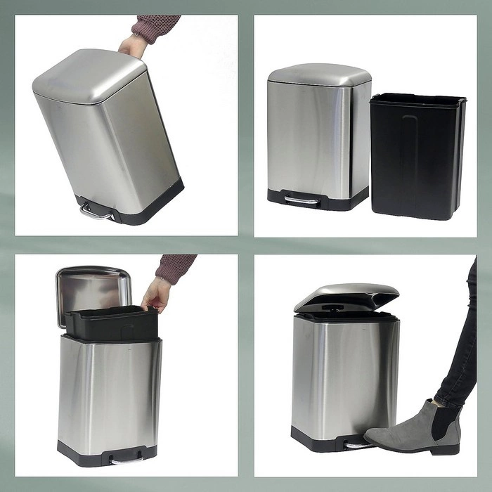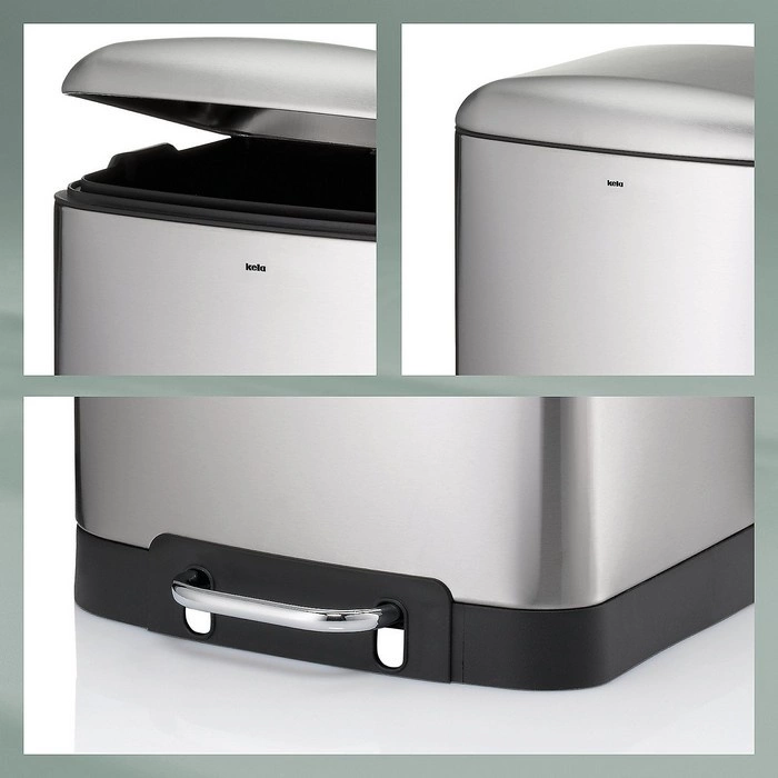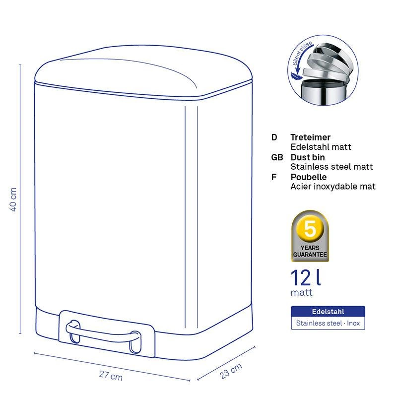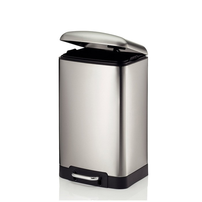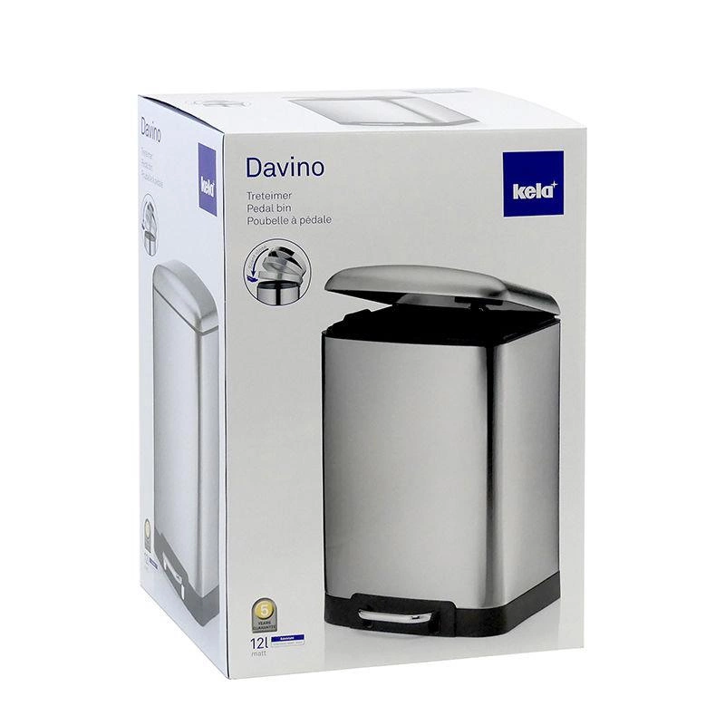 Kela - stalowy kosz na śmieci z pedałem, 12 l, 27 x 23 x 40 cm, satynowa stal Davino