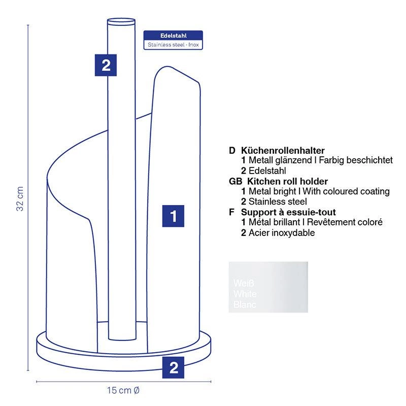 Kela - stojak na papierowy ręcznik, biały, 33 cm Stella