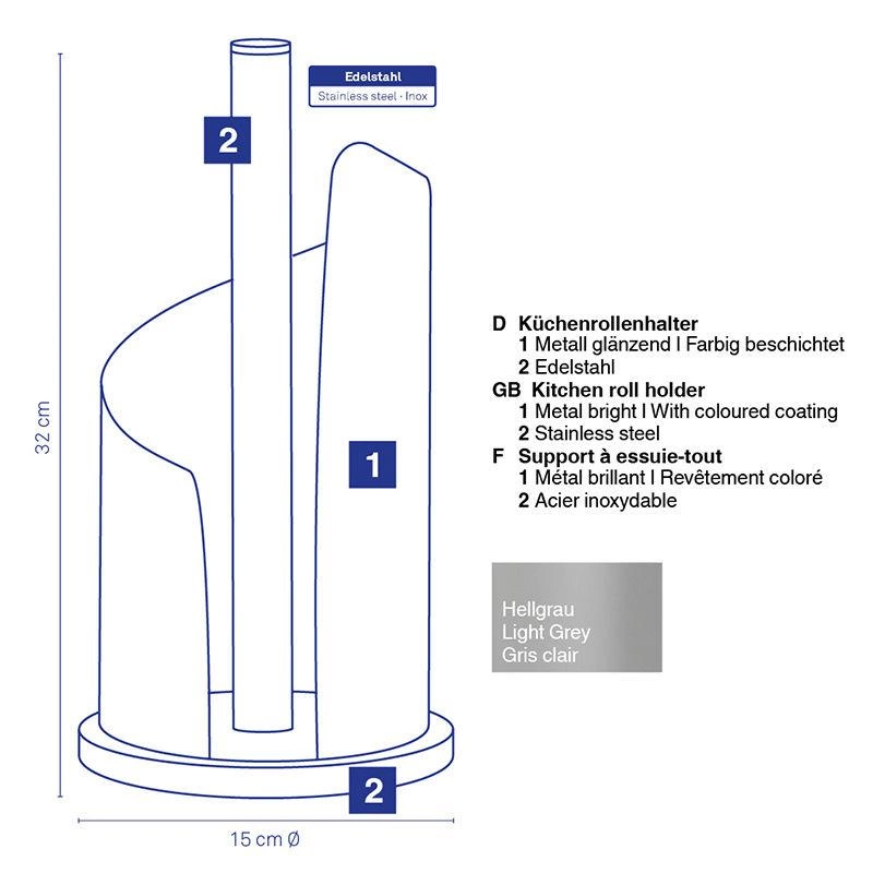 Kela - stojak na papierowy ręcznik, szary, 33 cm Stella