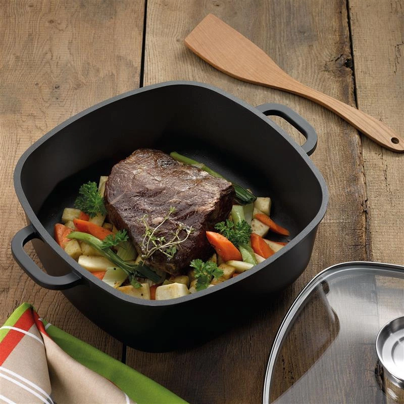 - doskonale sprawdzi się zarówno jako naczynie do pieczenia, jak i gotowania czy smażenia na kuchenkach