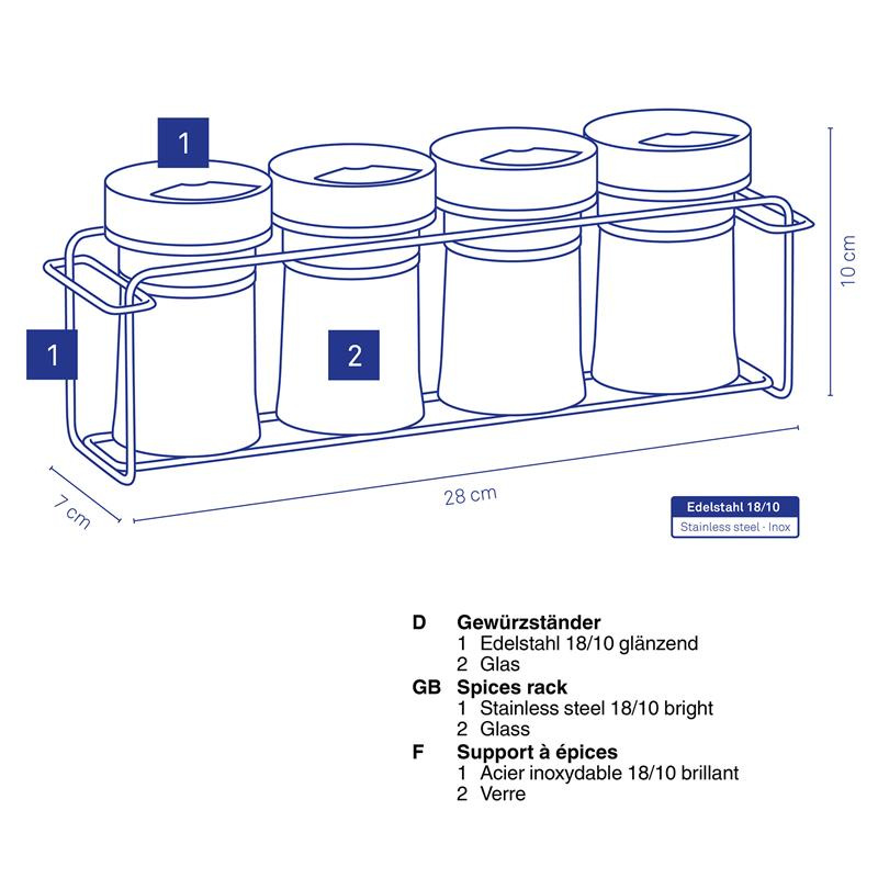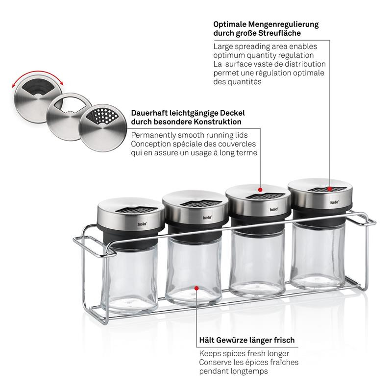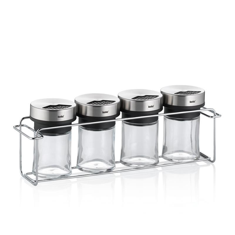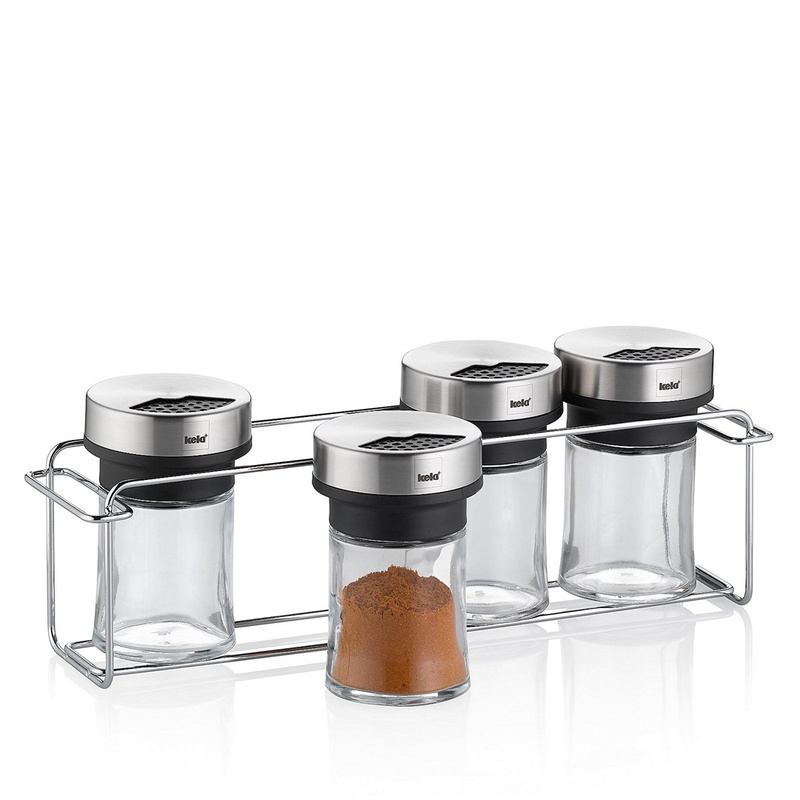 Kela - Zestaw 4 przyprawników +stojak 5el. stal Miko