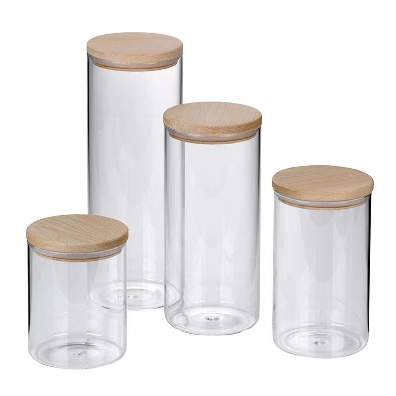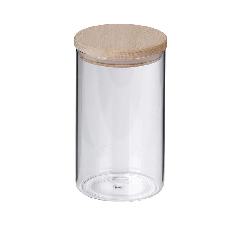 Kela - pojemnik kuchenny, szkło borokrzemowe, drewniana pokrywka, śred.10 cm, wys.17,5 cm, 1,0 l Amelie
