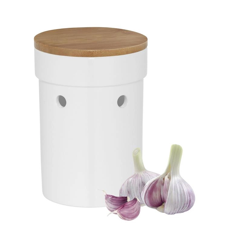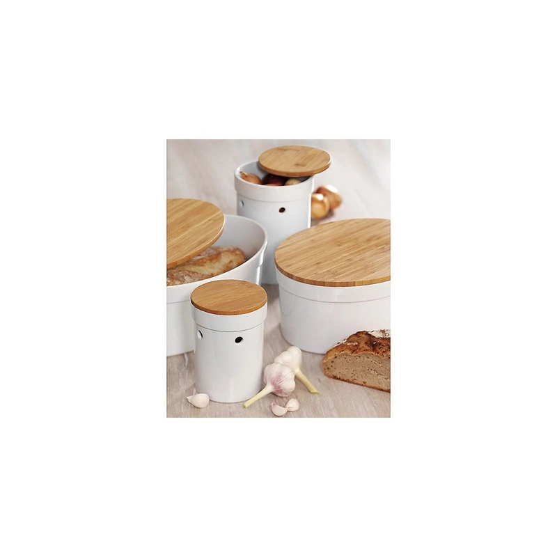 Kela - ceramiczny pojemnik na czosnek z bambusową pokrywą, śred. 12 x 17 cm Salena