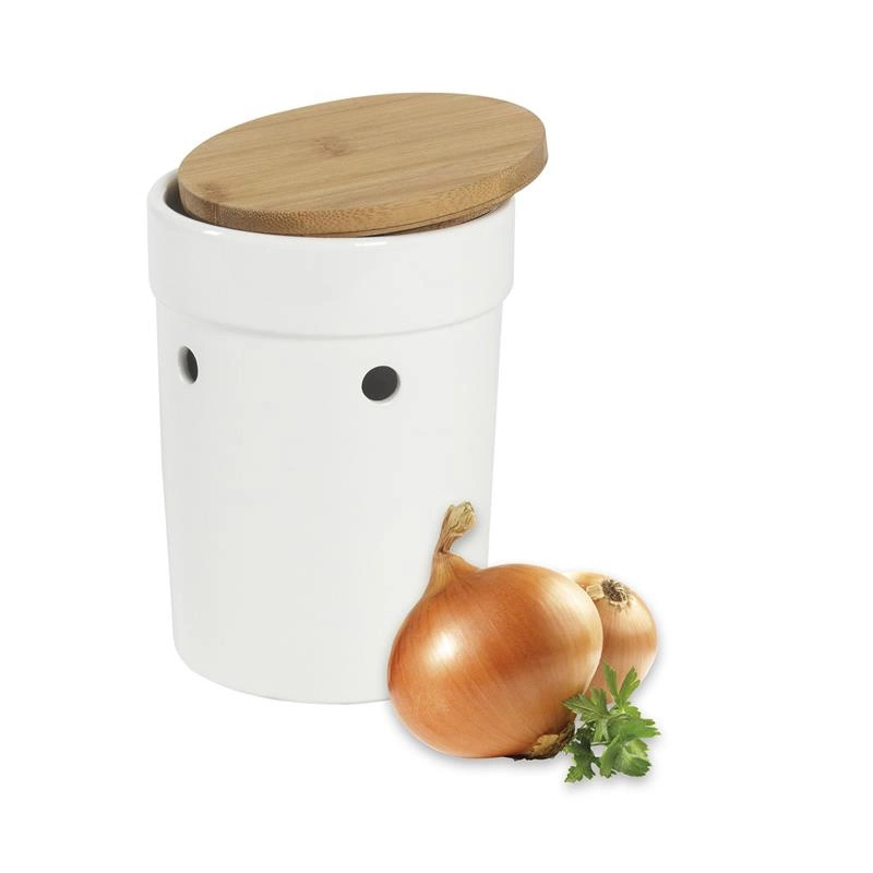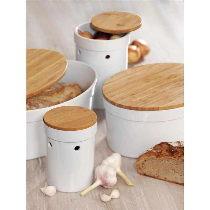 Kela - ceramiczny pojemnik na cebulę z bambusową pokrywą, śred. 13,5 x 21 cm Salena