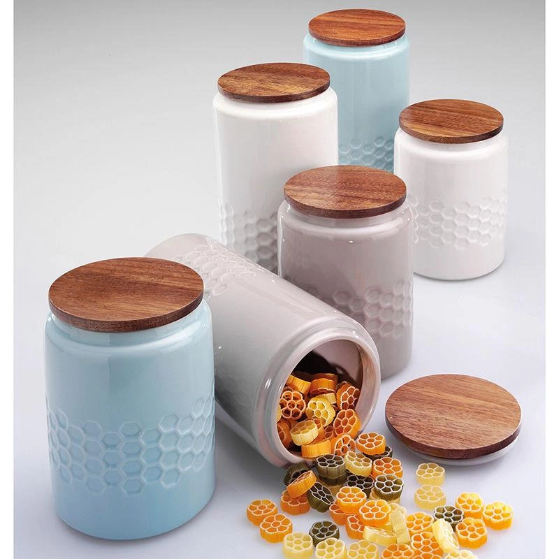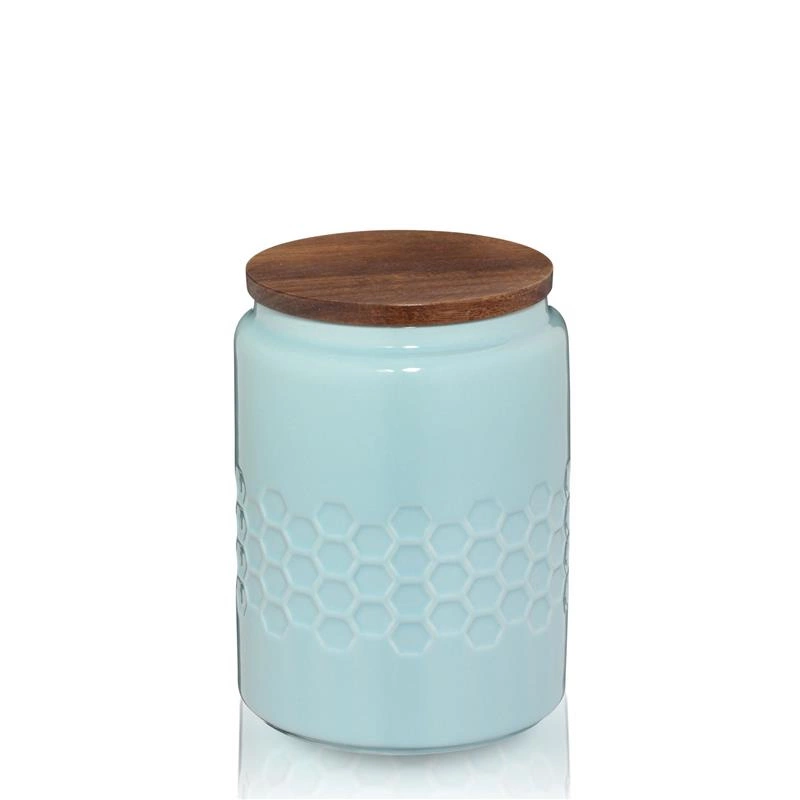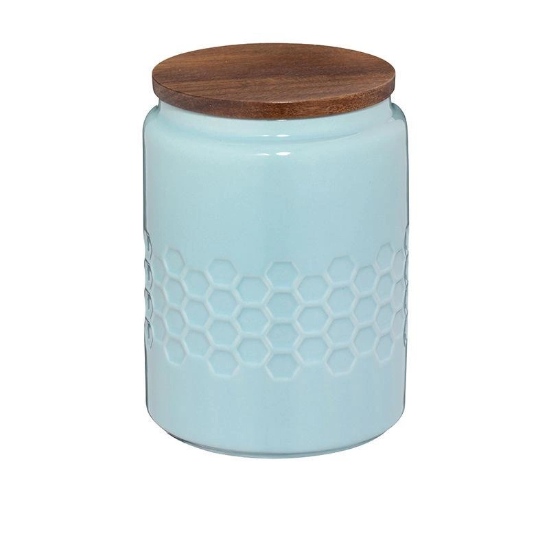 Kela - ceramiczny pojemnik z kauczukową pokrywką, śred. 10,5 cm, wys. 14,5 cm, 0,8 l, niebieski Mellis
