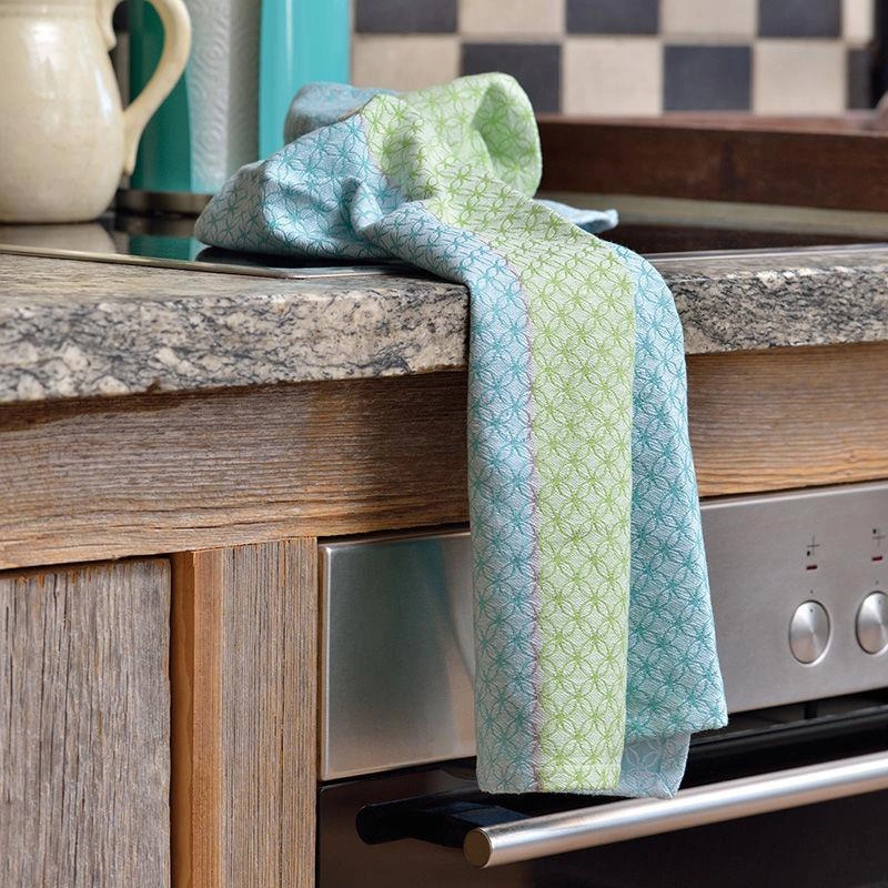 Kela - bawełniana ścierka kuchenna, 70x50 cm, paski niebiesko-ziel. Carla