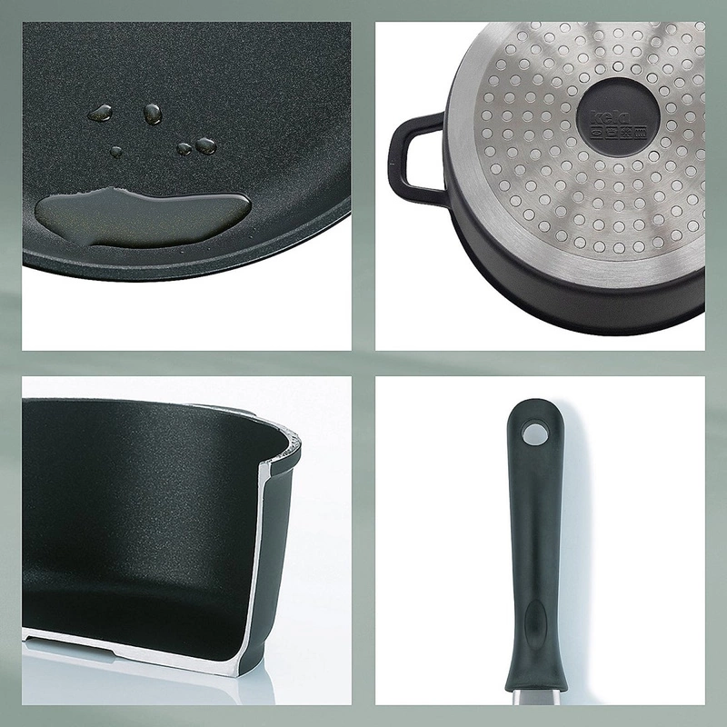 - wewnętrzne ścianki pokryte nieprzywierającą powłoką Greblon C3+ (teflon wzmacniany ceramiką)