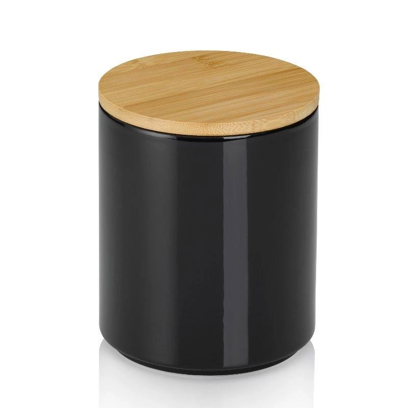 Kela - pojemnik kuchenny, ceramika/bambus, 1,0 l, śred. 12 x 15 cm, czarny Cady