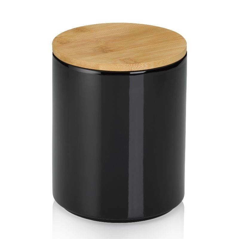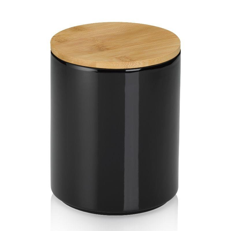Kela - pojemnik kuchenny, ceramika/bambus, 1,7 l, śred. 14 x 17,5 cm, czarny Cady
