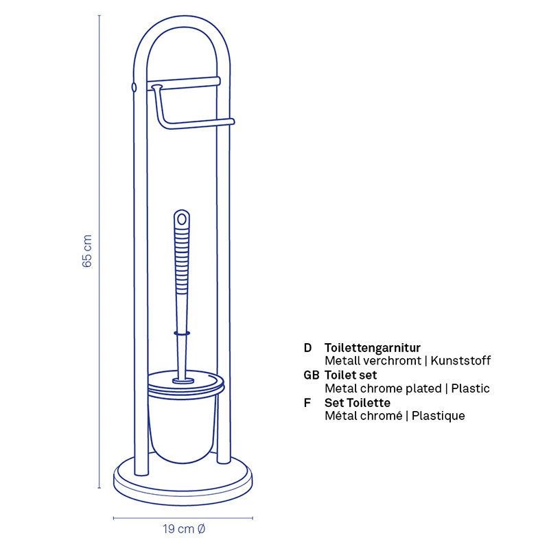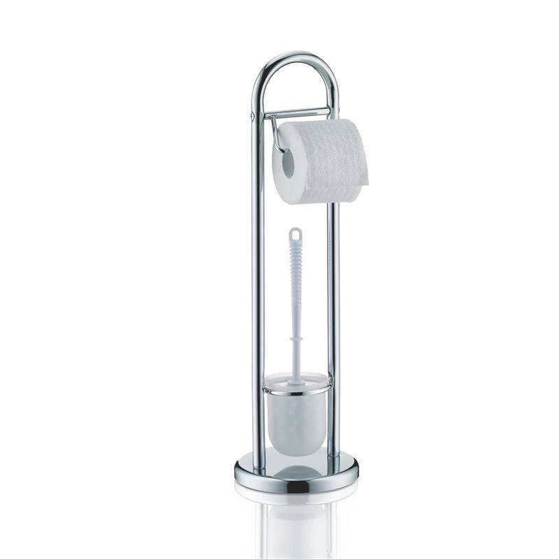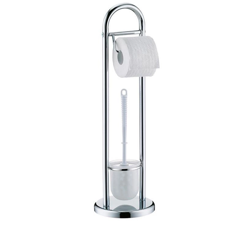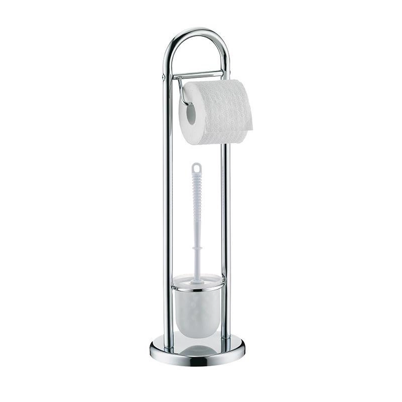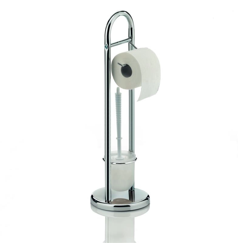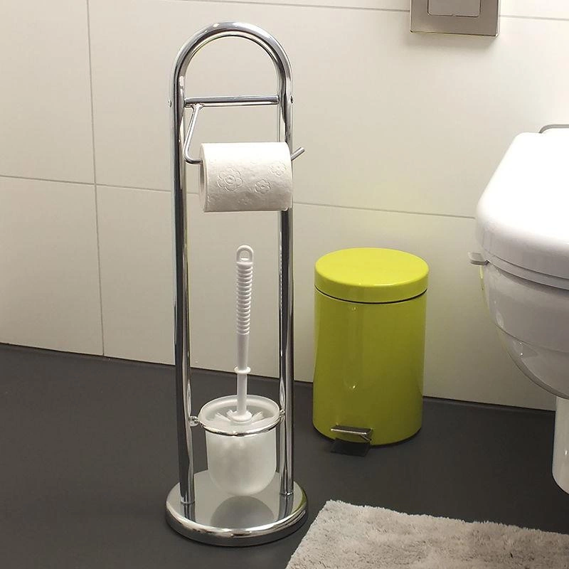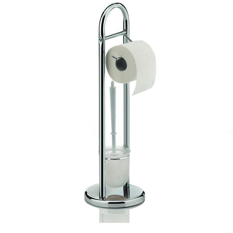 Zestaw toaletowy na stojaku: szczotka do WC i uchwyt na papier toaletowy