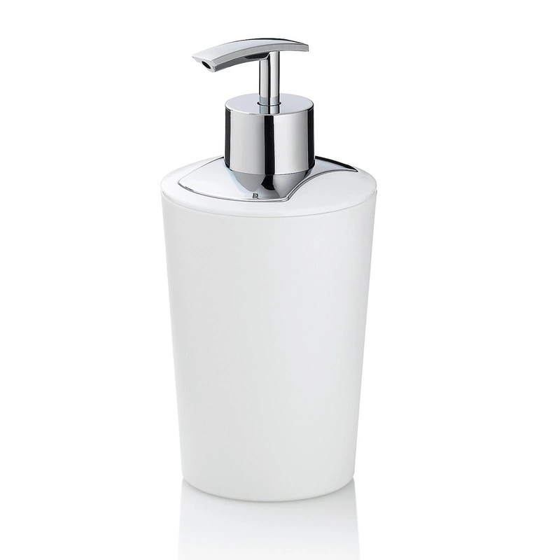 Kela - Dozownik do mydła 350ml biały-stal Marta Kela - dozownik do mydła, 0,35 l, śred. 8 x 17 cm, biały Marta Dozownik do mydła w płynie.
