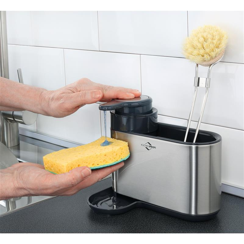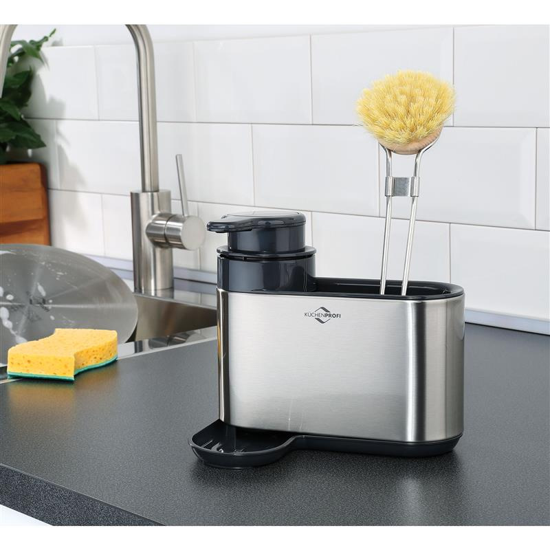 Kuchenprofi - organizer na akcesoria do zmywania z dozownikiem, stal nierdzewna/tworzywo sztuczne, 18 x 13 x 16 cm Primus