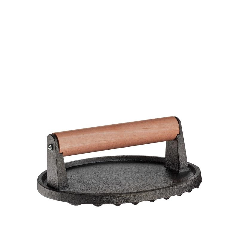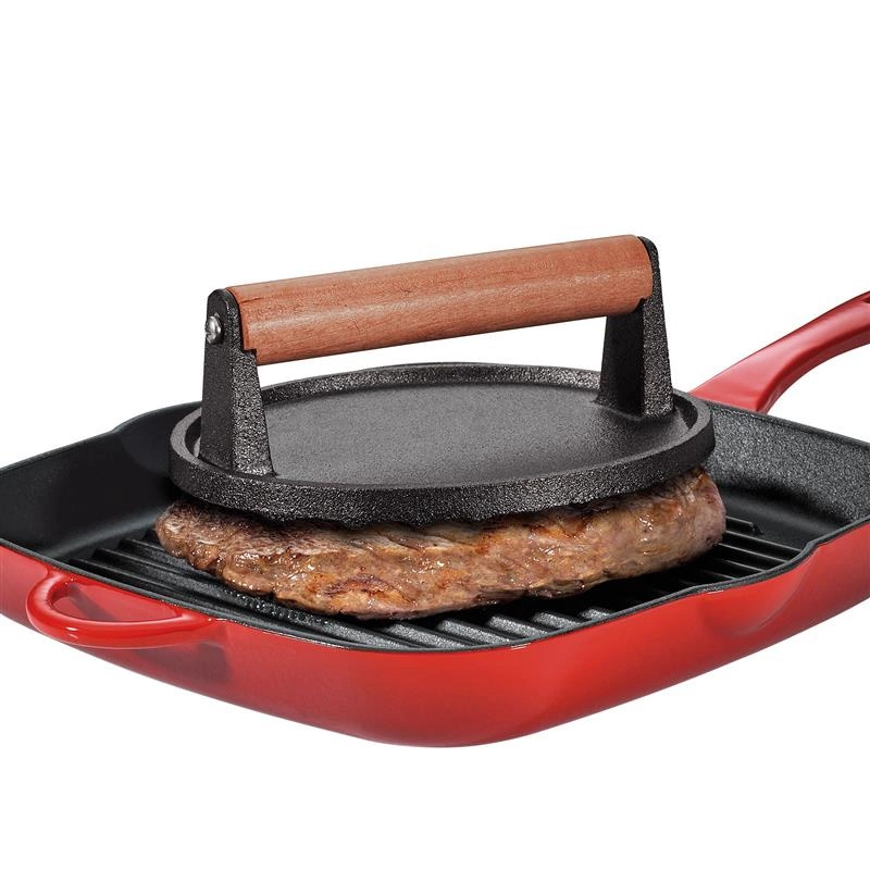 - pozwala ręcznie docisnąć mięso do patelni lub grilla, zapewniając mu równomierny dostęp do temperatury i optymalne wysmażenie