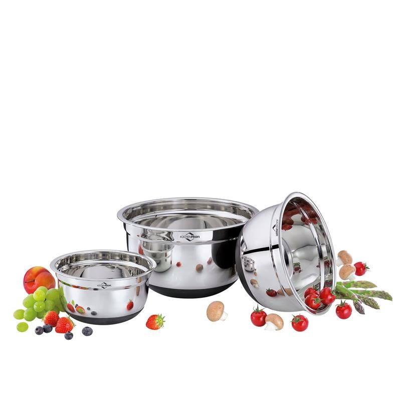 Kuchenprofi - 3 stalowe miski z antypoślizgowym spodem, śred.16, 20, 24 cm; 1,5, 2,6, 4,8 l