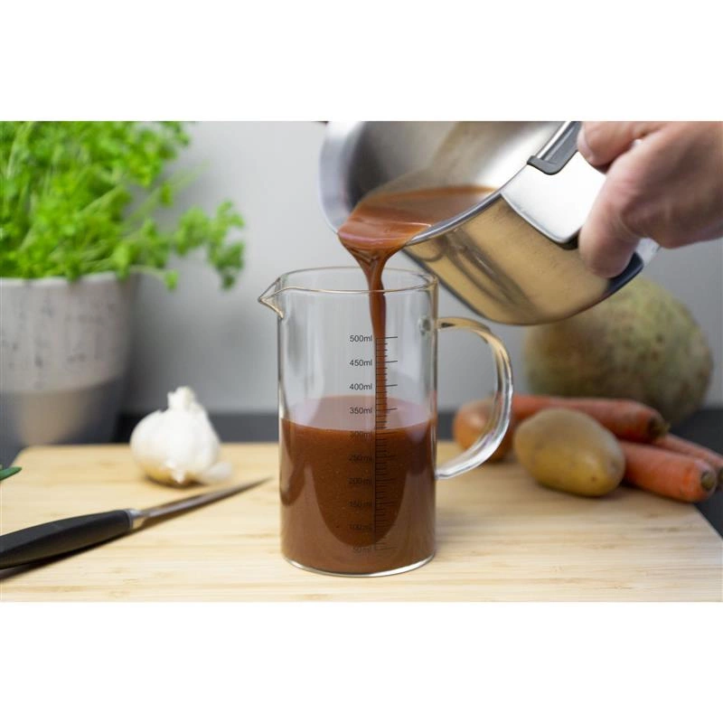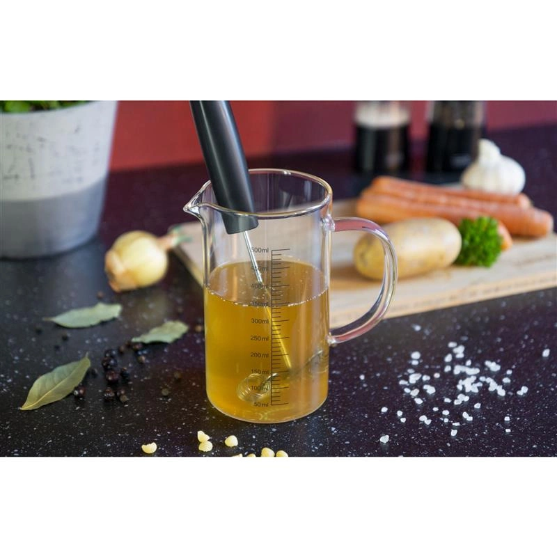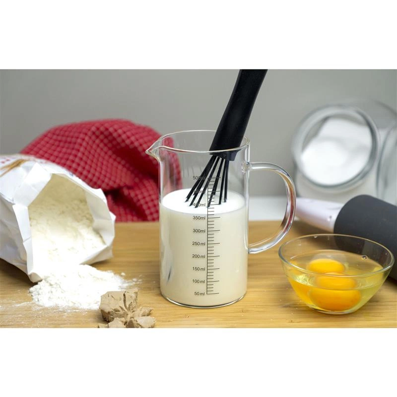 - szkło jest odporne na wysoką temperaturę (do 240°C), miarka może więc posłużyć także do odmierzania gorących sosów, spieniania gorącego mleka itp.