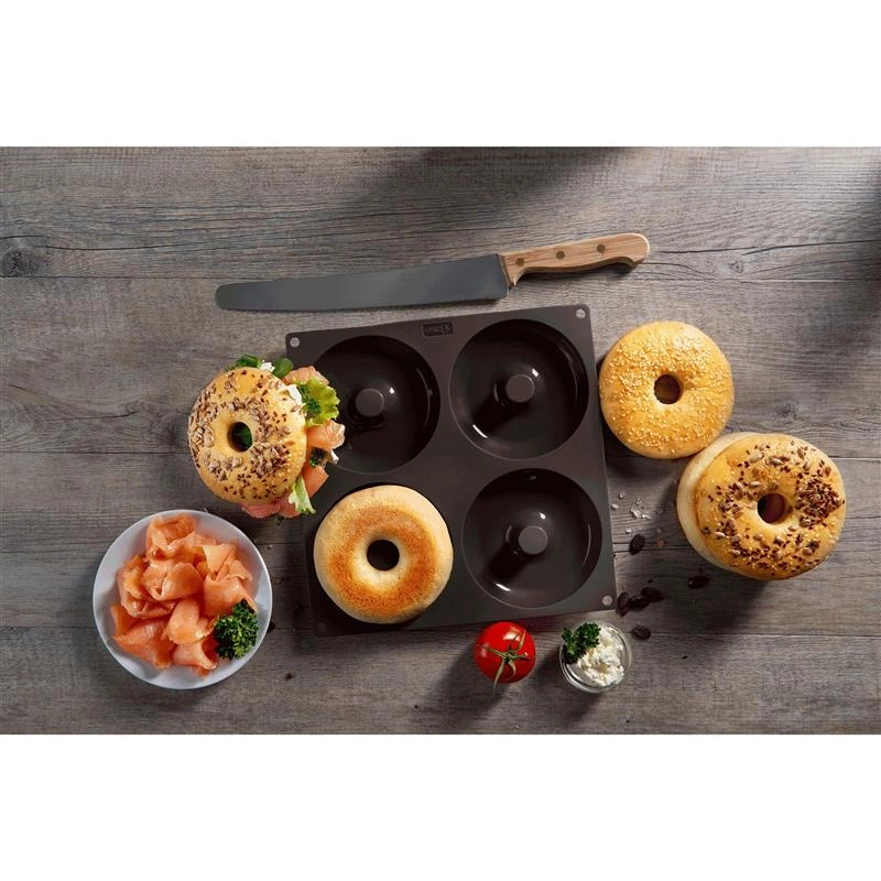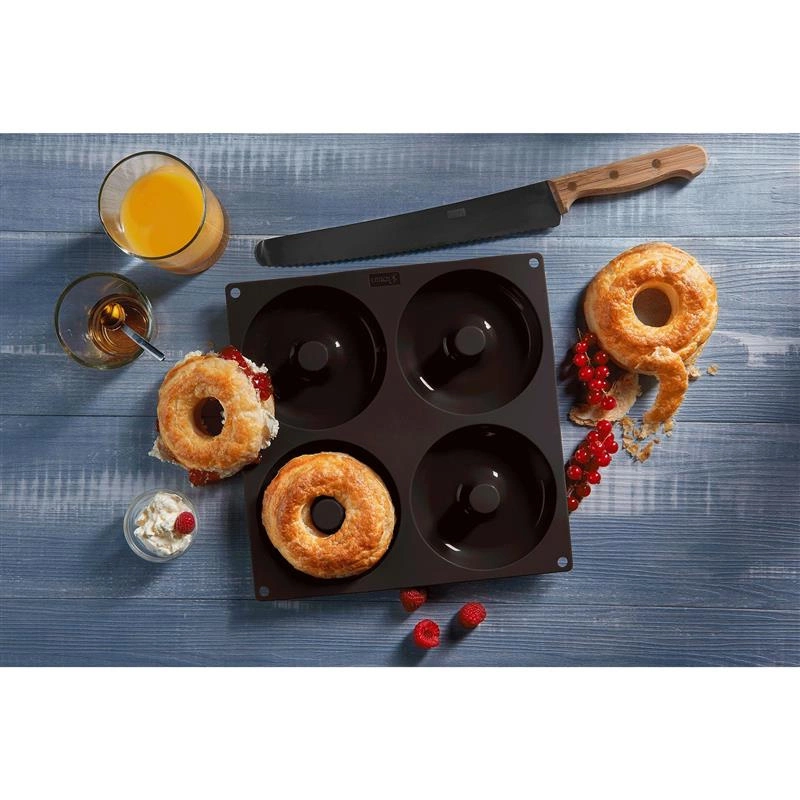 Forma do pieczenia z silikonu platynowego na 4 ciastka z dziurką lub bajgle.