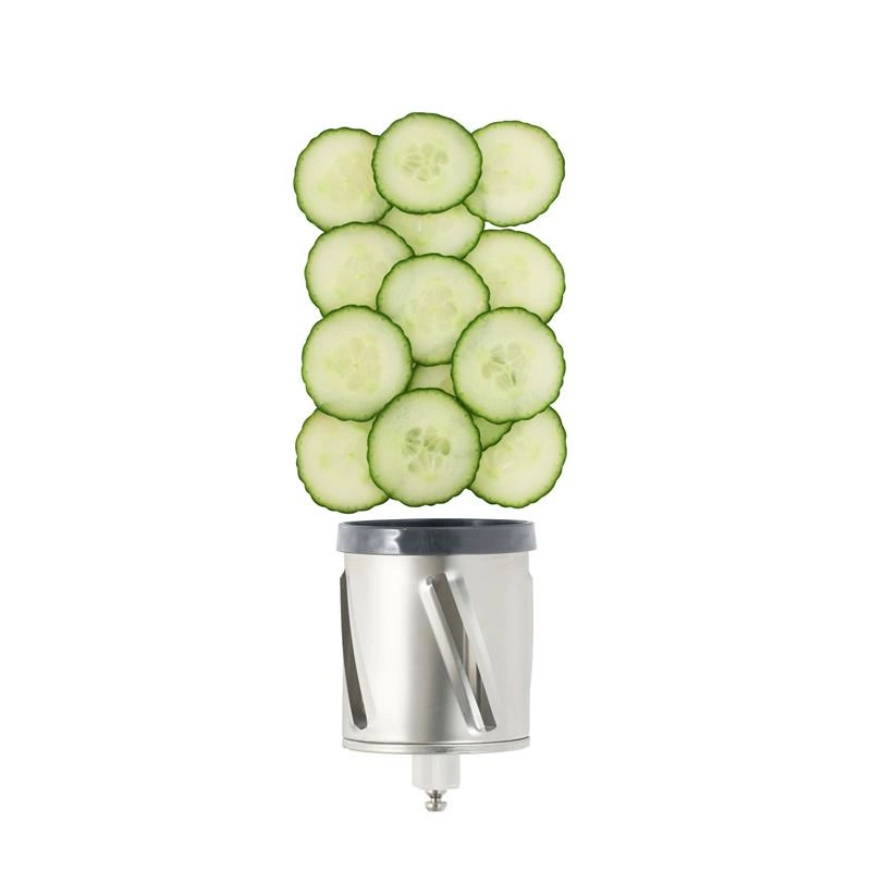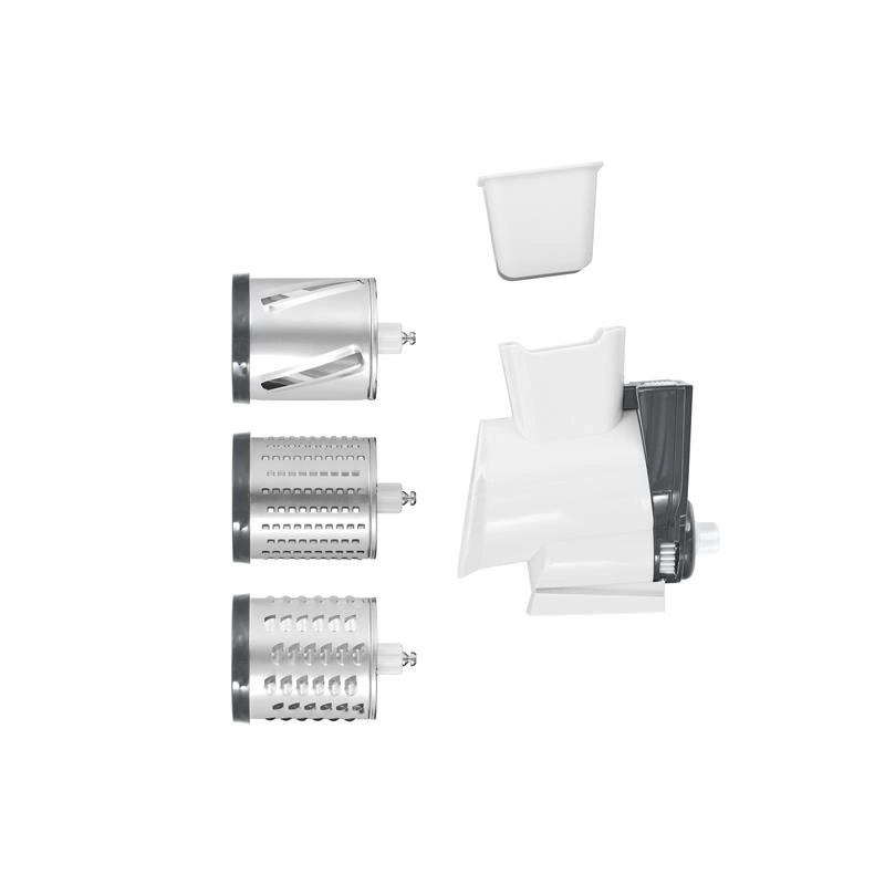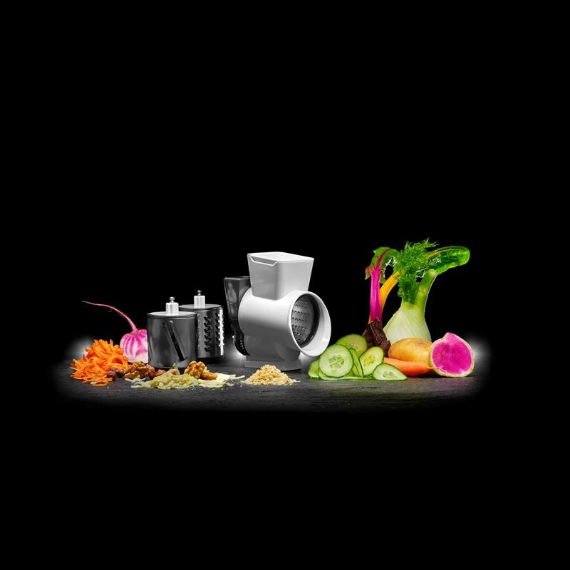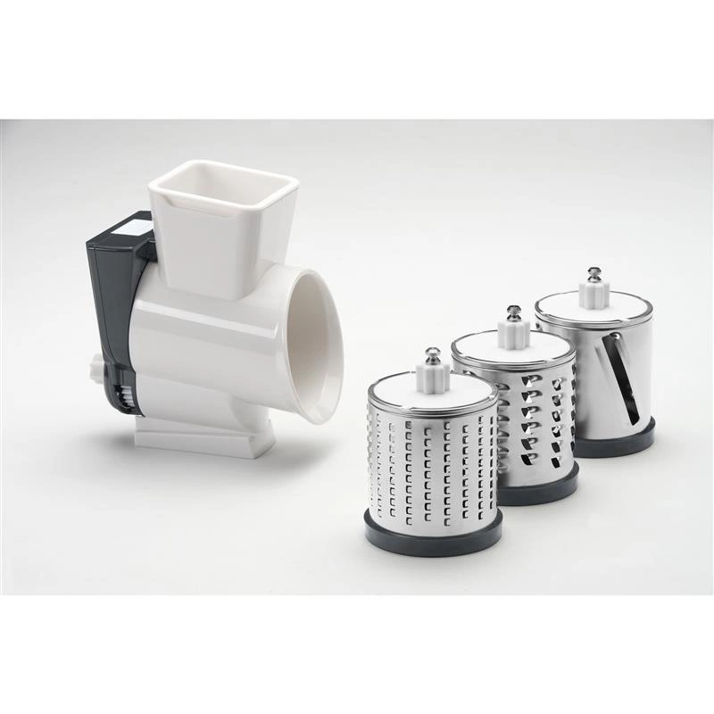 - 3 wymienne wkłady do tarcia: z dużymi oczkami, małymi oczkami i ostrzami do szatkowania