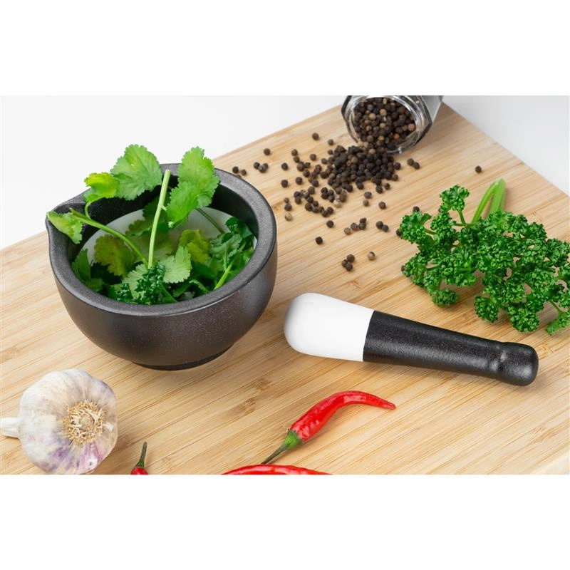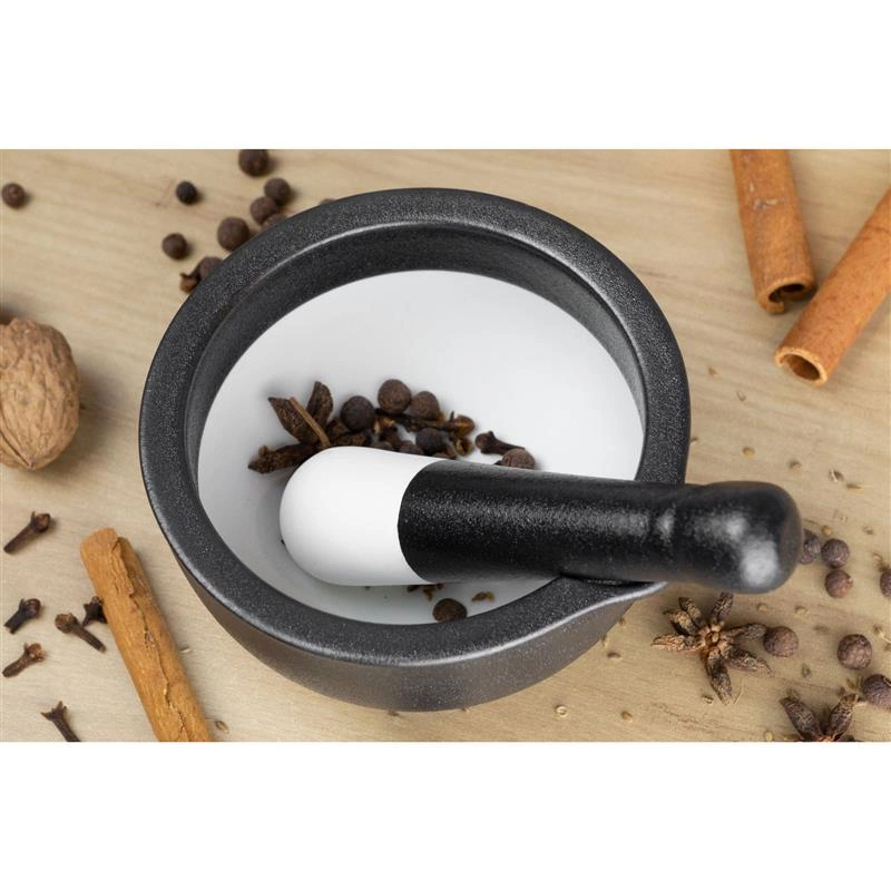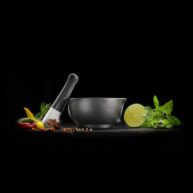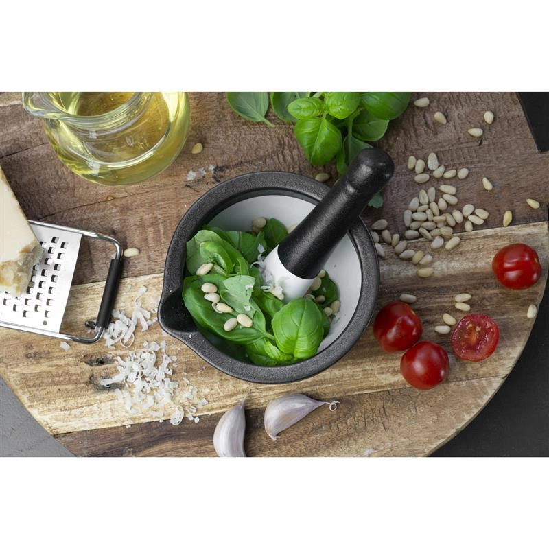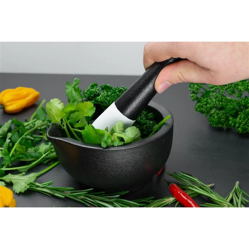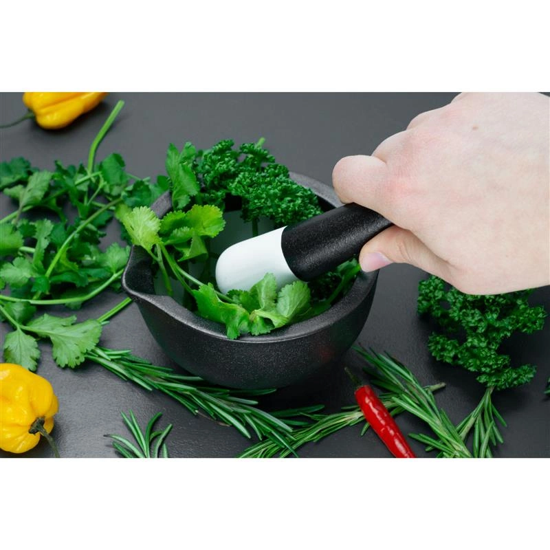 - do ugniatania i ścierania przyprawi i ziół, przygotowywania past, pesto itp.
