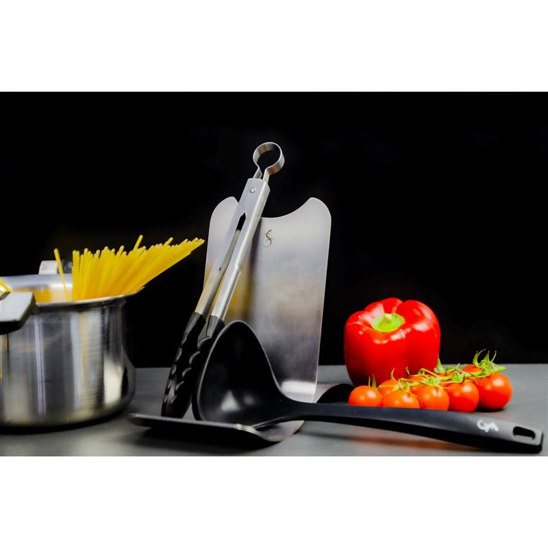 - podstawka zaprojektowana tak, aby umożliwić wygodne odkładanie wszelkiego rodzaju narzędzi i innych przedmiotów podczas gotowania